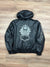 Vintage 00s Black Ed Hardy Leather Jacket, great condition overall with embroidery to front and back, small rip to hood lining which is an easy fix.