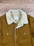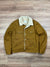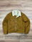 Tan Sandro Paris Faux Shearling cotton denim twill trucker jacket, slim fit in great condition no flaws.